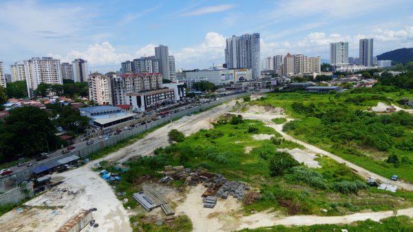 汇华产业集团的空地处,计划兴建全槟最大购物中心,及拓宽发展地段前方的路段。